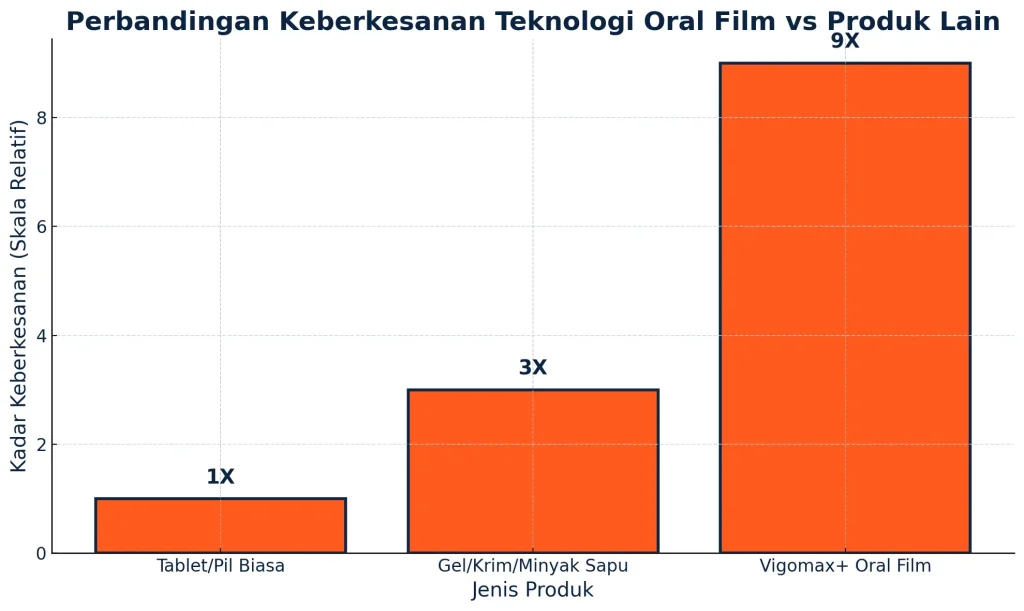 Bukan. Vigomax+ bukan ubat kuat. Ia adalah oral film teknologi baru yang bantu aktifkan semula Nitric Oxide (NO) — kunci utama sistem ereksi lelaki.